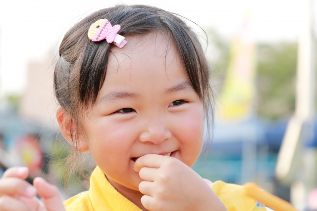 ステッピア豊中のおやつコーナーには、10円・20円・30円ごとに分かれたお菓子が並んでおり、子どもたちは自分で考えながら、60円分のおやつを選んでおやつタイムを楽しみます。その場での暗算が難しい場合には、スタッフと一緒に計算したり、お友だち同士で確認し合ったりしながら進めています。